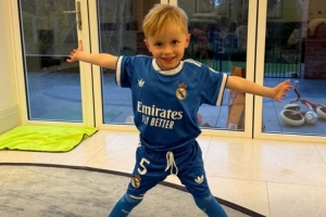 體育資訊11月19日訊 熱刺中場(chǎng)麥迪遜在今日通過社媒曬出自己兒子的動(dòng)態(tài),后者穿上了貝林厄姆在皇馬的5號(hào)球衣。