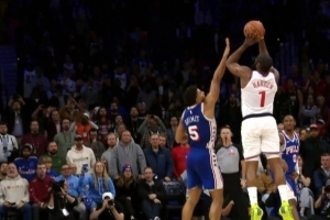 漏判3:比賽最后7秒,格萊姆斯與哈登的左臂發(fā)生接觸,該接觸影響了哈登的跳投動作,此為打手犯規(guī)漏吹。