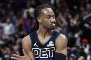 活塞球員詹金斯此役表現(xiàn)依舊不錯,他不僅自己得分效率很高,在組織上也很好地分擔了康寧漢姆的壓力。