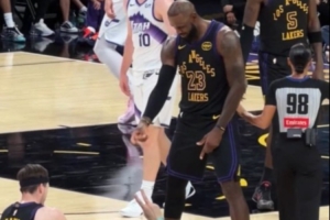 GIF-里夫斯投進(jìn)3+1后 詹姆斯慶祝