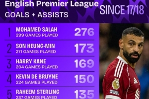 1.穆罕默德·薩拉赫,299場(chǎng),276球