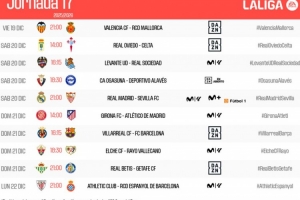體育資訊11月19日訊 西甲第17輪各場開球時(shí)間公布,12月21日4點(diǎn)皇馬vs塞維利亞,23:15比利亞雷亞爾vs巴薩。