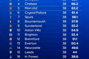 體育資訊11月20日訊 天空體育預(yù)測了本賽季英超聯(lián)賽的最終排名,阿森納奪冠。