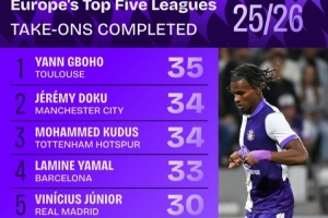 本賽季五大聯(lián)賽成功過人榜: