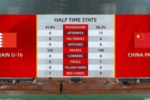 附國少隊vs巴林半場數(shù)據(jù)(巴林在前):
