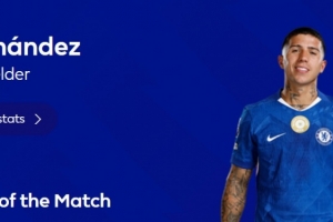 本場比賽恩佐在最后時刻破門鎖定勝局,賽后他也當(dāng)選英超官方球迷票選全場最佳球員。