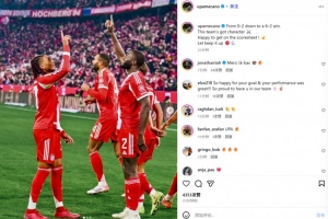于帕也在賽后通過社媒曬出自己的慶祝照,并配文:“從0-2落后到6-2取勝,這支球隊(duì)就是這么有韌性。很高興打開進(jìn)球賬戶,讓我們繼續(xù)前進(jìn)!”