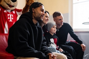 格納布里、基米希與拜仁吉祥物造訪豪納兒童醫(yī)院的腫瘤病房,看望患病兒童,為孩子們帶去歡樂,拜仁社媒曬出相關照片,記錄這溫馨的一天。