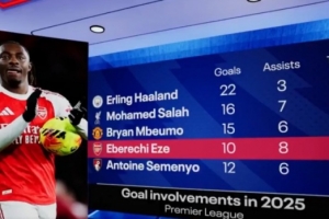據(jù)BBC統(tǒng)計,埃澤今年英超參與18粒進(jìn)球,僅少于哈蘭德、薩拉赫、姆伯莫。