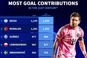體育資訊11月24日訊 《轉會市場》統(tǒng)計了新世紀各項賽事直接參與進球情況,梅西力壓C羅居首。