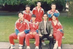 上世紀(jì)八十年代,郭玉佩(前排右二)與國青男籃出國比賽。前排右一為中國籃球名人堂成員鞏曉彬,后排右二為中國籃球名人堂成員胡衛(wèi)東。