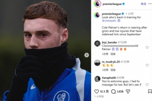 體育資訊11月25日訊 英超官方社媒在今日曬出切爾西的訓(xùn)練照,此前受傷的帕爾默已經(jīng)在參加訓(xùn)練。