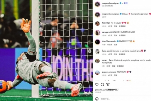 他也在賽后通過社媒曬出自己的多張撲救照,并配文:“哈!?? 永遠佛砸米蘭(米蘭前進)????”