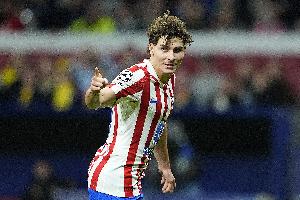 阿爾瓦雷斯去年以7500萬歐轉(zhuǎn)會費從曼城加盟馬競,本賽季出戰(zhàn)16場比賽9球4助,德轉(zhuǎn)身價1億歐元。