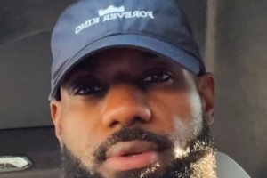 詹姆斯曬出了他在車內(nèi)的自拍,他頭戴一頂中國行期間發(fā)布的“Forever King(永遠(yuǎn)的王)”主題帽子,并配文道:“????”