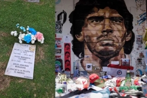 如今,馬拉多納長(zhǎng)眠于布宜諾斯艾利斯貝拉維斯塔花園私人墓地,與他的父母朵娜·托塔和老迭戈相伴。在那里,一塊簡(jiǎn)樸的墓碑守護(hù)著這位阿根廷球星的遺骸。由于一些不法分子企圖盜竊,這塊墓碑不得不頻繁更換。無論他們是否得逞,都無法抹去他在全世界足球迷心中的記憶。
