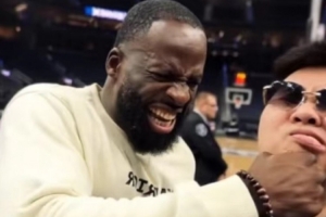 體育資訊11月25日訊 NBA常規(guī)賽,勇士134-117戰(zhàn)勝爵士。比賽中,中國(guó)歌手?jǐn)埨蠸KAIISYOURGOD現(xiàn)身場(chǎng)邊,給勇士助陣。