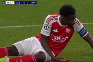 體育資訊11月27日訊 阿森納vs拜仁第16分鐘,諾伊爾出擊解圍,薩卡鼻子被撞出血,隊醫(yī)進場處理!