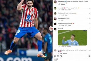 本場(chǎng)比賽阿爾瓦雷斯破門,賽后他也在個(gè)人社媒曬出本場(chǎng)慶祝照片,配文寫道:“球隊(duì)拿出很棒的表現(xiàn),取得重要的三分!”