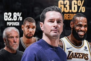 美媒Basketball Forever:雷迪克目前執(zhí)教戰(zhàn)績(jī)63勝36負(fù),勝率63.6%高于波波維奇的62.8%(1390勝824負(fù));在雷迪克的帶領(lǐng)下,湖人隊(duì)在前三節(jié)領(lǐng)先的情況下戰(zhàn)績(jī)?yōu)?7勝4負(fù),是NBA歷史上最好的戰(zhàn)績(jī)。