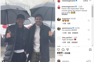 西蒙尼看望自己的兒子吉奧瓦尼·西蒙尼,后者社媒曬出父子合照,配文:“這真是無(wú)比特別的時(shí)光,我一直都渴望與你們相見(jiàn),感謝你們的到訪?!?/p>