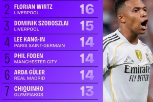 上一篇: 本賽季歐冠射門次數(shù)榜:姆巴佩居首,格林伍德次席,哈蘭德第三