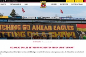 體育資訊11月29日訊 荷甲球隊(duì)前進(jìn)之鷹俱樂(lè)部官方對(duì)與斯圖加特比賽中的不當(dāng)行為表示歉意。
