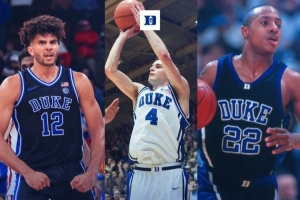 這是他賽季前8場(chǎng)比賽中,第二次砍下單場(chǎng)35分。自1985-86賽季NCAA引入投籃時(shí)間限制以來,杜克大學(xué)歷史上只有三位球員做到過單賽季多次單場(chǎng)得分35+。另外兩位是雷迪克(兩個(gè)賽季做到,05-06賽季更是單賽季7次、其中包括3場(chǎng)40+)、杰伊·威廉姆斯(注:圖中標(biāo)注賽季有誤,應(yīng)為01-02賽季)
