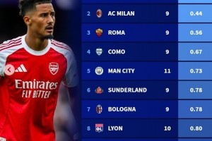 體育資訊10月21日訊 德轉盤點了五大聯(lián)賽球隊本賽季至今場均最少失球榜單(各項賽事),其中阿森納場均丟0.27球最少,具體如下: