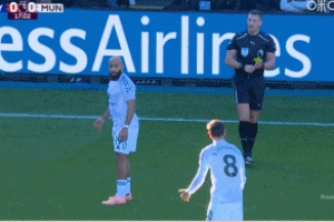 體育資訊11月30日訊 英超第13輪,曼聯(lián)客戰(zhàn)水晶宮,第18分鐘,姆伯莫不滿(mǎn)裁判判罰,憤怒砸球吃到黃牌!