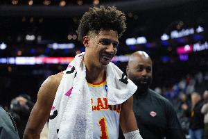 5年時間里,杰倫·約翰遜闖過選秀、發(fā)展聯(lián)盟、傷病三道難關(guān),在闖關(guān)的過程中不斷進化。于是,2025-26賽季,我們看到了“新鷹王”的上位,這位以勒布朗·詹姆斯、“魔術(shù)師”約翰遜為偶像的全能戰(zhàn)士已站在全明星的大門前。