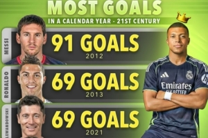 體育資訊12月1日訊 數(shù)據(jù)網(wǎng)站Score90盤點了21世紀(jì)以來單一自然年進球榜,其中梅西91球高居榜首,姆巴佩今年60球第6,具體如下: