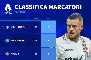 體育資訊12月2日訊 德國轉(zhuǎn)會市場統(tǒng)計了本賽季年齡30+球員在意甲的進球數(shù)量,并列出榜單,恰爾汗奧盧5球居首,德布勞內(nèi)、瓦爾迪、貝拉爾迪4球。