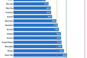 體育資訊12月2日訊 TA撰文統(tǒng)計25-26賽季英超各俱樂部預(yù)估的陣容成本比例,并將其與新的陣容成本控制線進行對比。
