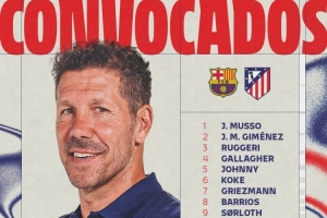 馬競對陣巴薩大名單:小蜘蛛、格列茲曼、瑟爾洛特、巴埃納在列