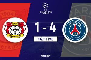 體育資訊10月22日訊 北京時間10月22日凌晨3時,歐冠聯(lián)賽階段第3輪,巴黎做客拜耳競技場對陣勒沃庫森。上半場,帕喬首開紀錄,隨后扎巴爾尼送點,格里馬爾多罰丟點球,安德里希肘擊犯規(guī)被紅牌罰下,隨后扎巴爾尼犯規(guī)領到紅點套餐,阿萊克斯-加西亞點射扳平,杜埃雙響、克瓦拉茨赫利亞傳射。半場戰(zhàn)罷,巴黎暫4-1領先勒沃庫森。