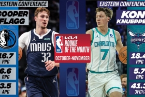 體育資訊12月3日訊 今日NBA官方公布了10-11月東西部月最佳新秀,狀元弗拉格與黃蜂4號秀克尼佩爾分別當選。