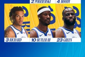 勇士首發(fā):波杰姆斯基、穆迪、理查德、巴特勒、追夢(mèng)。