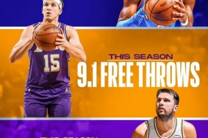 大家總是嘲笑哈登和SGA刻意制造罰球機(jī)會,但現(xiàn)在是時候稱盧卡和奧斯汀·里夫斯為聯(lián)盟新的“罰球王”了。