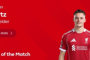 此役維爾茨踢滿全場,并造穆基勒烏龍,為利物浦扳平比分,英超官方宣布,經過球迷的投票,維爾茨當選本場比賽最佳球員。