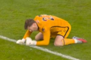 英超第14輪,利物浦1-1戰(zhàn)平桑德蘭。比賽第94分鐘,桑德蘭錯(cuò)失絕殺機(jī)會(huì),桑德蘭門將羅夫斯大腳制造單刀機(jī)會(huì),伊西多過(guò)掉阿利松后打門被小基耶薩門線解圍,羅夫斯本來(lái)高舉雙手準(zhǔn)備慶祝,最后只能跪地怒捶草皮。