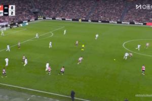 西甲第19輪,皇馬3-0客勝畢爾巴鄂競(jìng)技。比賽第56分鐘,姆巴佩在己方半場(chǎng)背身拿球被犯規(guī),主裁吹哨,卡馬文加在對(duì)方半場(chǎng)開球給到姆巴佩,這時(shí)主裁吹哨示意回到犯規(guī)地點(diǎn)開球。在死球狀態(tài)下,姆巴佩穿襠戲耍了撲過來的畢巴后衛(wèi)博伊羅,博伊羅憤怒推翻了姆巴佩,主裁趕過來將姆巴佩教育了一番,姆巴佩雙手指自己表示不解。