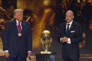 體育資訊12月6日訊 在2026美加墨世界杯的抽簽儀式上,國際足聯(lián)正式宣布,向79歲的美國總統(tǒng)特朗普頒發(fā)首屆國際足聯(lián)和平獎,國際足聯(lián)主席因凡蒂諾現(xiàn)場為特朗普頒獎。
