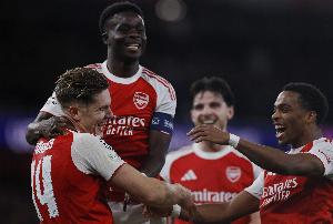 阿森納首發(fā)陣容:拉亞、本-懷特、廷伯、因卡皮耶、卡拉菲奧里、蘇維門迪、賴斯、厄德高、薩卡、埃澤、梅里諾。