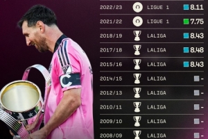 據(jù)Sofascore統(tǒng)計,梅西職業(yè)生涯至今13次贏得聯(lián)賽冠軍,包括西甲10冠、法甲2冠、美職聯(lián)1冠。