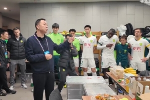 足協(xié)杯決賽賽前,北京國(guó)安足球俱樂部董事長(zhǎng)周金輝來到球隊(duì)更衣室,為球隊(duì)送上鼓勵(lì)。