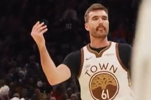 在本場比賽中,斯潘塞在命中一記三分后朝勇士替補席比出數(shù)錢的姿勢慶祝,因傷缺陣的庫里轉發(fā)了這個視頻。