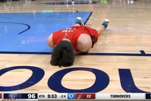 楊瀚森遭遇包夾被埃迪打到面部痛苦倒地 在地上躺了半天沒(méi)起來(lái)