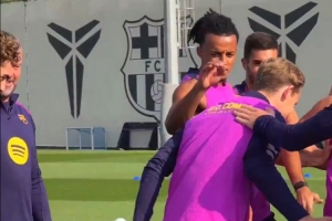 體育資訊10月16日訊 巴薩球員在訓(xùn)練時列隊(duì)歡迎德容和費(fèi)爾明,并對他們致以拍頭禮進(jìn)行祝賀。
