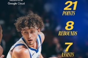 賽后,勇士官方曬出波杰姆斯基的數(shù)據(jù)海報(bào),將其評(píng)選為本場(chǎng)最佳球員。